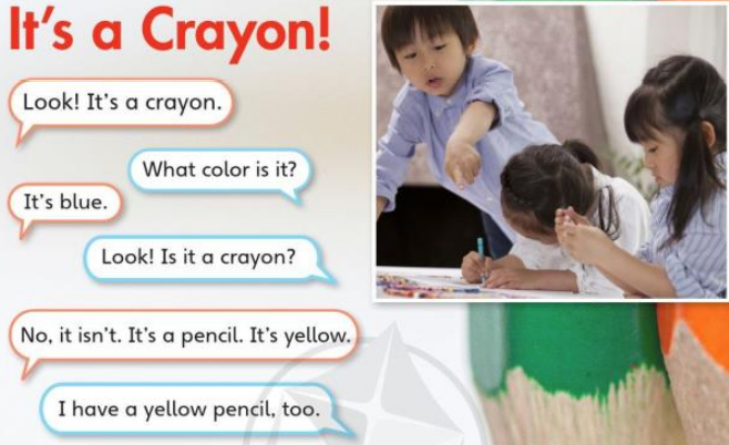 Look! It’s a crayon. (Nhìn kìa! Nó là một cây bút màu sáp.)