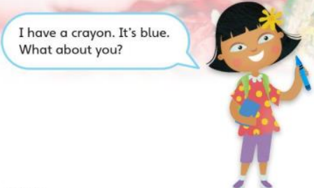 (Tôi có một cây bút màu sáp. Nó màu xanh. Còn bạn thì sao?)