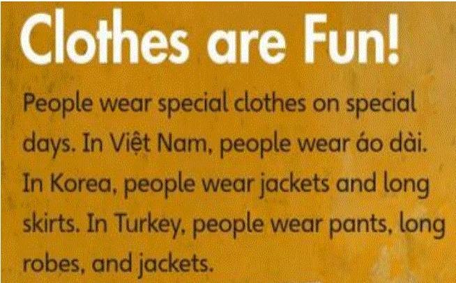 People wear special clothes on special days. In Việt Nam, people wear áo dài. In Korea, people wear