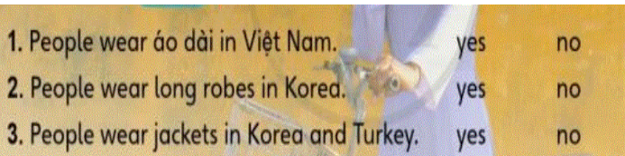 1. People wear áo dài in Việt Nam.                                         Yes                 No