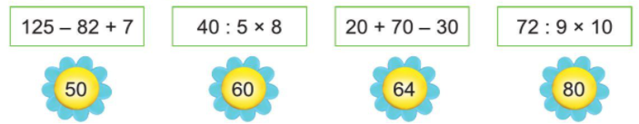 Tính giá trị của mỗi biểu thức sau: Chọn giá trị đúng với mỗi biểu thức sau: Chọn dấu (+, – ) thích hợp: