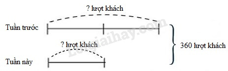 Tổng lượng khách tham quan khu di tích tuần này và tuần trước là 360 lượt khách. Do thời tiết khôg thuận lợi nên số lượt khách tham quan tuần này giảm 2 lần so với tuần trước. Tính lượng khách tham quan từng tuần.