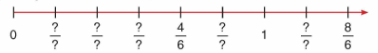 a) Hai vạch chia liền nhau cách nhau $\frac{1}{6}$. Em quan sát tia số rồi viết các phân số thích hợp