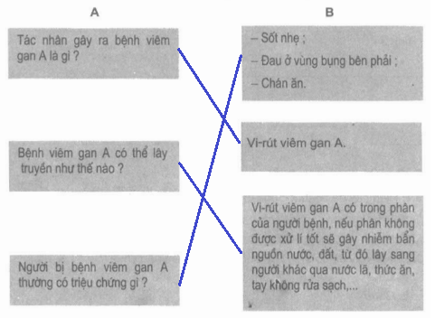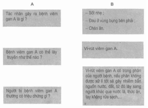 Nối câu hỏi ở cột A với câu trả lời ở cột B cho phù hợp.