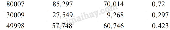 + Viết dấu phẩy ở hiệu thẳng cột với các dấu phẩy của số bị trừ và số trừ.