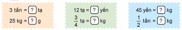 1kg = 1000 g ; 1 tạ = 100 kg ; 1 tấn = 1000 kg