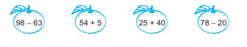 b) 98 – 63 = 35                      54 + 5 = 59                25 + 40 = 65              78 – 20 = 58