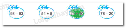 a) Tô màu vàng vào những quả xoài ghi phép tính có cùng kết quả.b) Tô màu xanh vào quả cam ghi phép tính có kết quả lớn nhất. Viết số thích hợp vào chỗ chấm. a) 70 + …. = 100 b) 100 – 60 = …. c) 90 – ….. = 80 d) …. + 60 = 100 Một ô tô có 45 ghế ngồi cho hành khách, trong đó có 31 ghế đã có hành khách ngồi. Hỏi trên ô tô còn bao nhiêu ghế trống? Viết các số thích hợp vào chỗ trống.