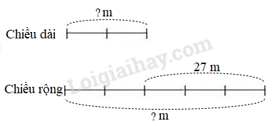 Câu 4. Một mảnh vườn hình chữ nhật có chiều rộng ngắn hơn chiều dài là 27 m. Chiều rộng bằng $\frac{2}{5}$ chiều dài.
