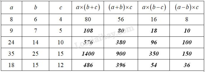 Có thể tính giá trị các biểu thức rồi xác định tính đúng sai của các biểu thức đã cho, hoặc áp dụng tính chất giao hoán của phép nhân, phép cộng.