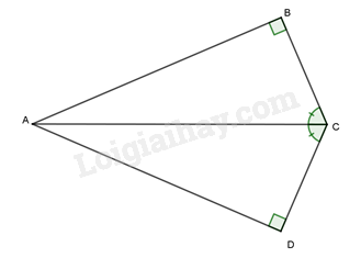 Hai tam giác vuông \(\Delta ABC\), \(\Delta ADC\) có cạnh huyền \(AC\) chung, góc nhọn \(\widehat {ACB} = \widehat {ACD}\) nên hai tam giác vuông \(\Delta ABC\), \(\Delta ADC\)bằng nhau theo trường hợp cạnh huyền – góc nhọn.