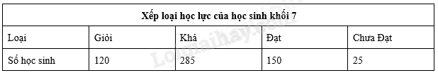 Kết quả tìm hiểu về kết quả xếp loại học lực của các bạn học sinh Khối 7 được cho bởi bảng thống kê sau: