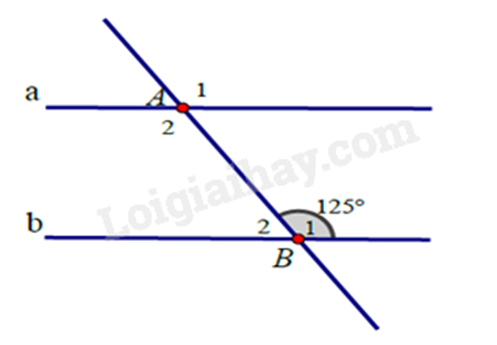 \(\widehat {{A_1}} = \widehat {{B_1}} = {125^0}\) (hai góc đồng vị)