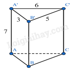 Cho hình lăng trụ đứng tam giác \(ABC.A’B’C’\) có cạnh \(A’B’ = 3\,{\rm{cm}}\),\({B^\prime }{C^\prime } = 5\,{\rm{cm}}\), \(A’C’ = 6\,{\rm{cm}}\), \(AA’ = 7\:{\rm{cm}}\).
