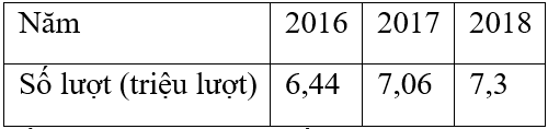 Cho bảng thống kê số lượt khách du lịch (ước đạt) đến Ninh Bình trong các năm 2016, 2017, 2018: