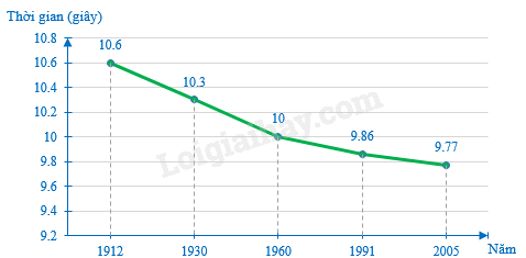 Biểu đồ dưới đây cho biết kỉ lục thế giới về thời gian chạy cự li 100 mét trong các năm từ 1912 đến 2005.