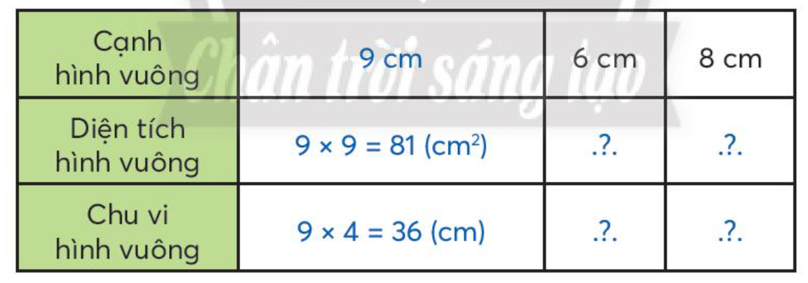 – Diện tích hình vuông = cạnh hình vuông nhân với chính nó.