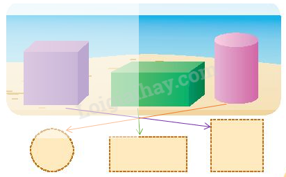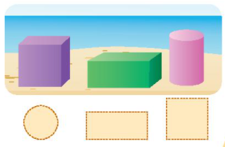 Xác định các dạng hình khối có trong hình vẽ từ đó em chọn vết của mỗi khối gỗ trên cát.