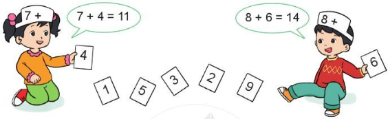 – Quan sát ta thấy tổng của hai số trong mỗi ngôi nhà chính là số trên đám mấy.