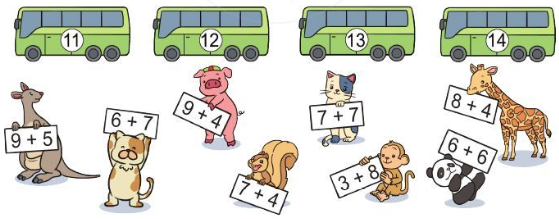– Quan sát ta thấy tổng của hai số trong mỗi ngôi nhà chính là số trên đám mấy.