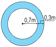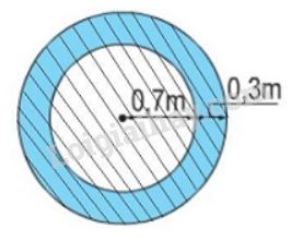 Miệng giếng nước là một hình tròn có bán kính \(0,7m\). Người ta xây thành giếng rộng \(0,3m\) bao quanh miệng giếng. Tính diện tích của thành giếng đó.