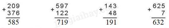 Tính. Đặt tính rồi tính: 285 + 507 164 + 53 216 + 8 318 + 142 248 + 25 159 + 6 Chọn kết quả đúng với mỗi phép tính: