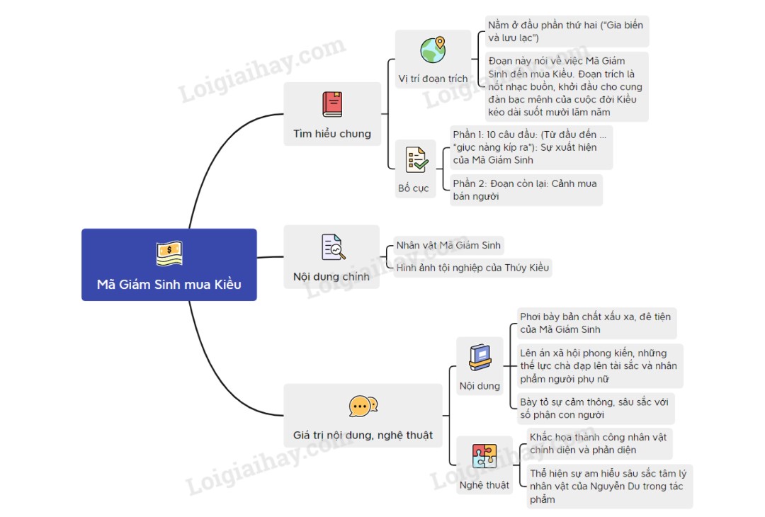 Sơ đồ tư duy về đoạn trích “Mã Giám Sinh mua Kiều”: