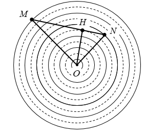 OH là đường cao hạ từ O xuống MN, \(OH = 4,8\lambda \);