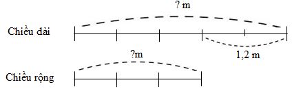 Một cái thùng sắt không nắp dạng hình hộp chữ nhật có chiều rộng kém chiều dài \(1,2m\) và bằng \(\dfrac{3}{5}\) chiều dài, chiều cao \(0,5m\). Người ta sơn mặt trong và mặt ngoài của thùng.