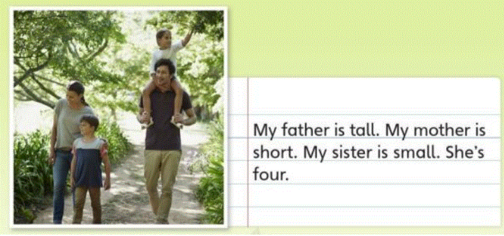 My father is tall. My mother is short. My sister is small. She’s four.
