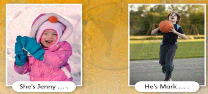 1. Listen and read. TR: B45.2. Look and say.3. Write about Jenny or Mark. Write 10 – 20 words.