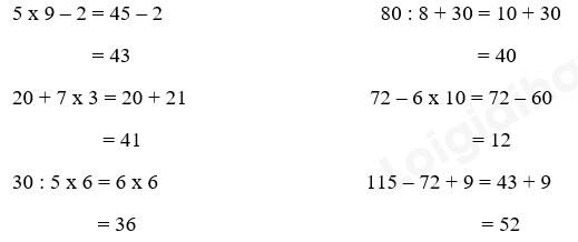 Nếu trong biểu thức chỉ có các phép tính cộng, trừ, nhân, chia thì ta thực hiện các phép tính nhân, chia trước; rồi thực hiện các phép tính cộng, trừ sau.