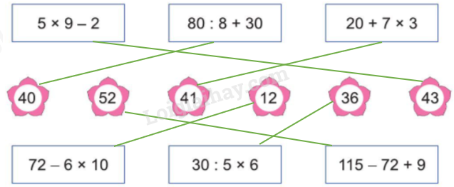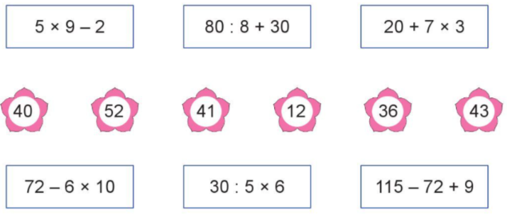 Tính. Mỗi số trong bông hoa là giá trị của biểu thức nào?