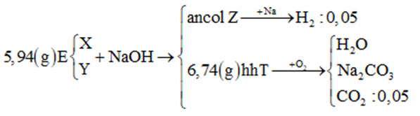 – Xét E + NaOH ⟶ T + ancol