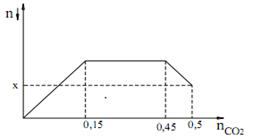 Sục CO2 vào dung dịch hỗn hợp gồm Ca(OH)2 và KOH ta quan sát hiện tượng theo đồ thị hình bên (số liệu tính theo đơn vị mol). Giá trị của x là?