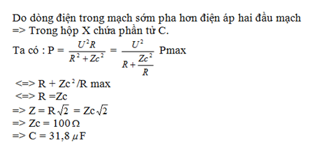 và \({R_1} = 20\sqrt 2 \,\,\Omega \). Tại thời điểm t (s) cường độ dòng điện trong mạch bằng 4 A. Đến thời điểm \(t + \frac{1}{{300}}\,\,\left( s \right)\) thì điện áp u = 0 và đang giảm. Công suất của đoạn mạch X là