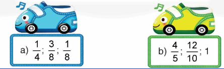 So sánh các phân số rồi xác định số lớn nhất, số bé nhất