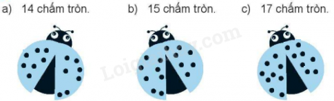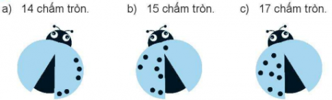 – Bọ rùa ở hình c đang có 8 chấm, cần vẽ thêm 9 chấm để được 17 chấm tròn.