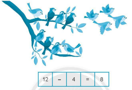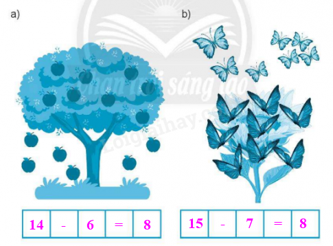 – Số con bướm còn lại trên cây = Tất cả số con bướm trong hình – số con bay đi.