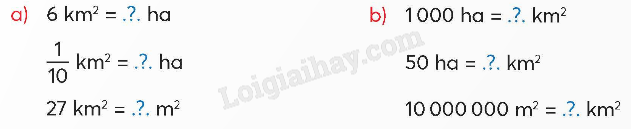 Áp dụng các cách đổi: 1 km2 = 100 ha