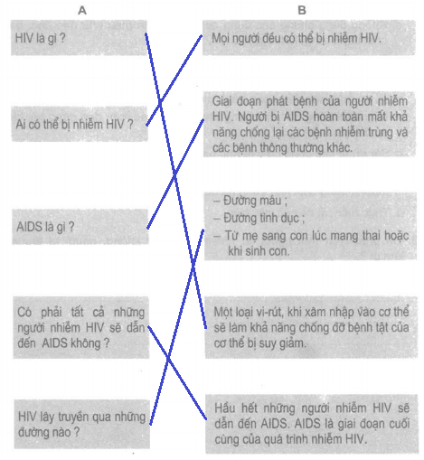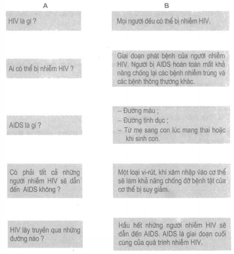Nối câu hỏi ở cột A với câu trả lời ở cột B cho phù hợp.