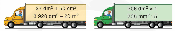 – Thực hiện phép tính với các số tự nhiên rồi viết đơn vị đo tương ứng sau kết quả vừa tìm được.