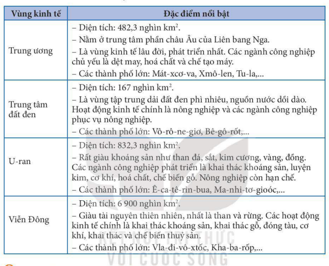 • Xác định các vùng kinh tế của Liên bang Nga.