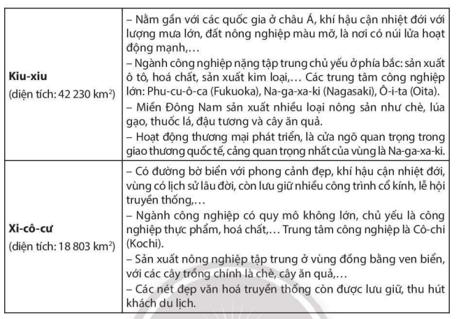 Dựa vào bảng 23.2, hãy nêu những đặc điểm nổi bật của các vùng kinh tế ở Nhật Bản.