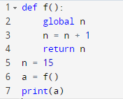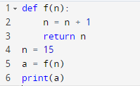 Có lỗi. Chương trình có lỗi vì không nhận biết được biến n. Biến n có trong hàm f() chỉ có tác dụng bên trong hàm nhưng không có tác dụng bên ngoài hàm f().