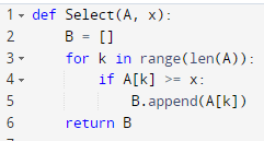 Viết hàm với đầu vào là list A, số thực x. Hàm cần trả về một list B thu được từ list A bằng cách chỉ lấy các phần tử có giá trị ≥ x.