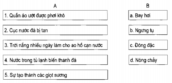 Nối ô chữ ở cột A với ô chữ ở cột B cho phù hợp.