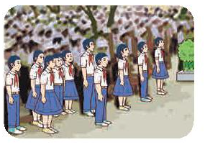 Vào sáng thứ Hai hằng tuần, chúng em được tham dự lễ chào cờ. Lễ chào cờ của trường em bắt đầu lúc 7 …?… 30 phút. Trong buổi lễ này, chúng em háy Quốc ca trong 3 ..?…. 30 …?…