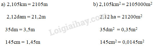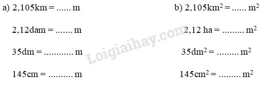 Áp dụng bảng đơn vị đo độ dài và bảng đơn vị đo khối lượng để chuyển đổi các số đo đã cho.