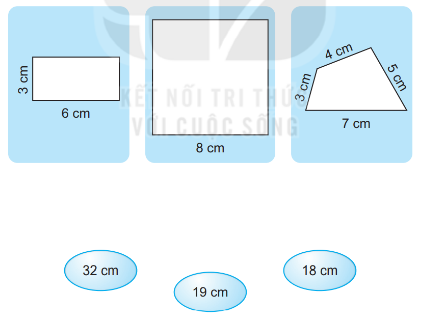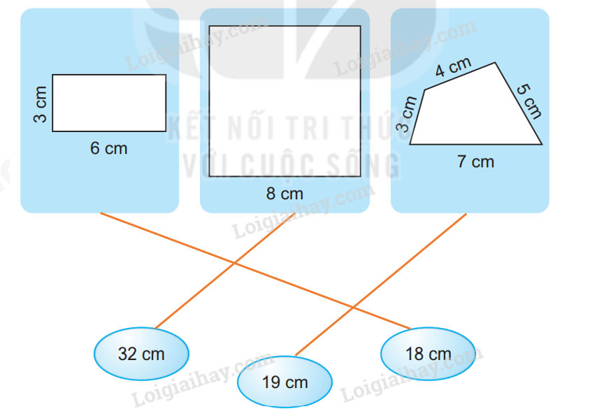 Nối hình với số đo là chu vi của hình đó.
